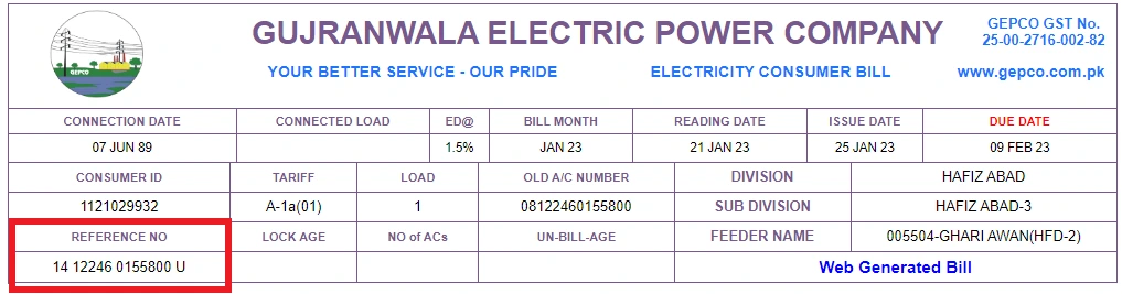 Now that you know your Reference number you can enter in the above box to get your latest GEPCO Bill online in a few second.Our system will check if your latest bill is available ,otherwise it will show the latest bill of previous month.